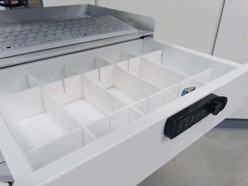 Aan onze cow’s kunnen diverse lades en medicijncassettes gekoppeld worden al dan niet bestemd voor medicijndistributie. Verschillende soorten sloten zijn mogelijk.