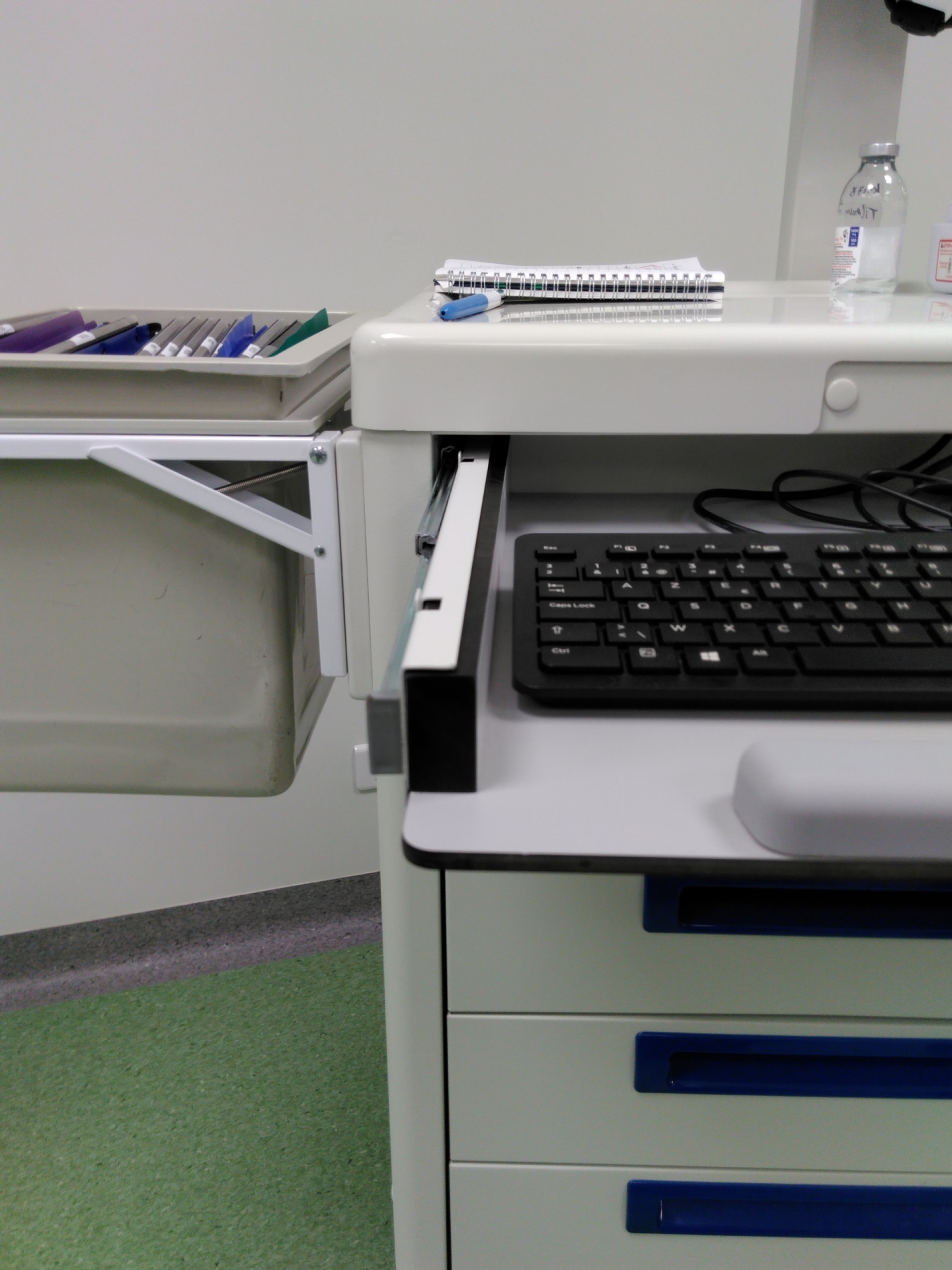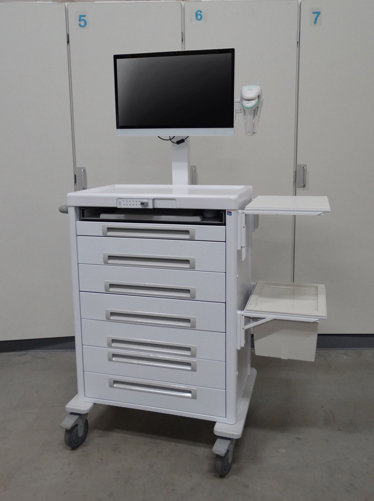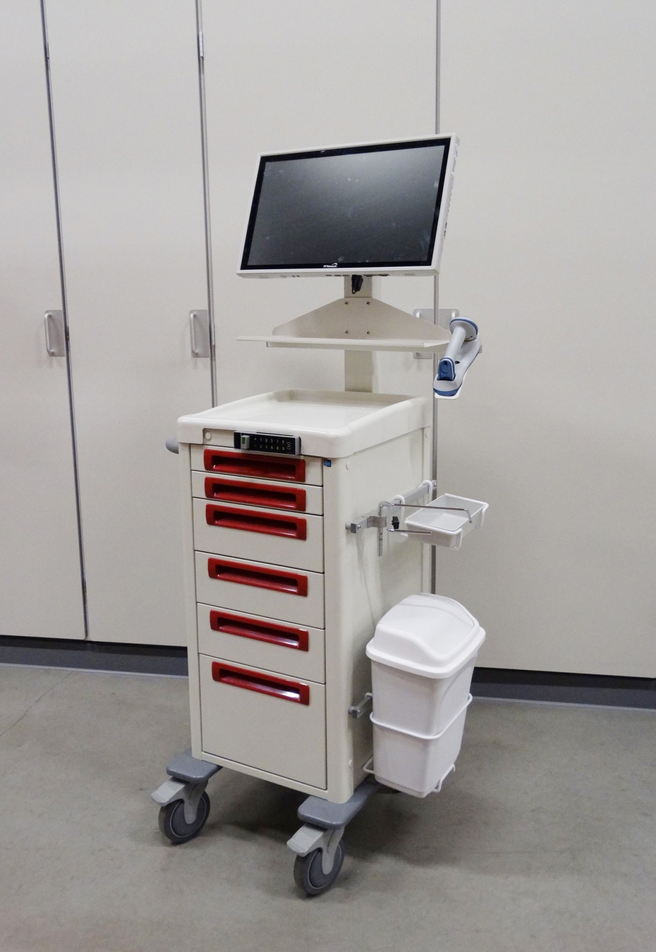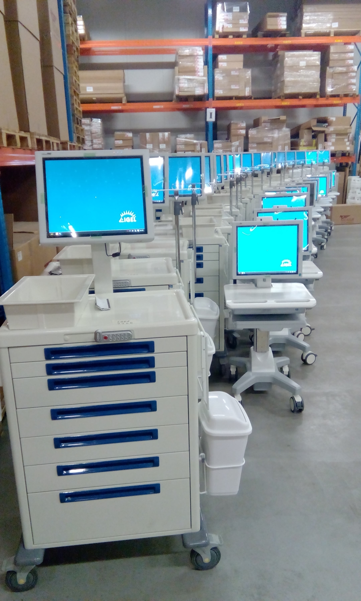 - De medicatiewagens zijn uitgerust met o.m. een 22" DTR medische PC, een IP68 medisch toetsenbord met IP68 muis en een Zebra barcodescanner. Tevens zijn er diverse accessoires uit ons assortiment gebruikt.