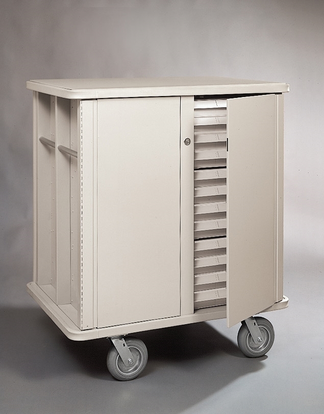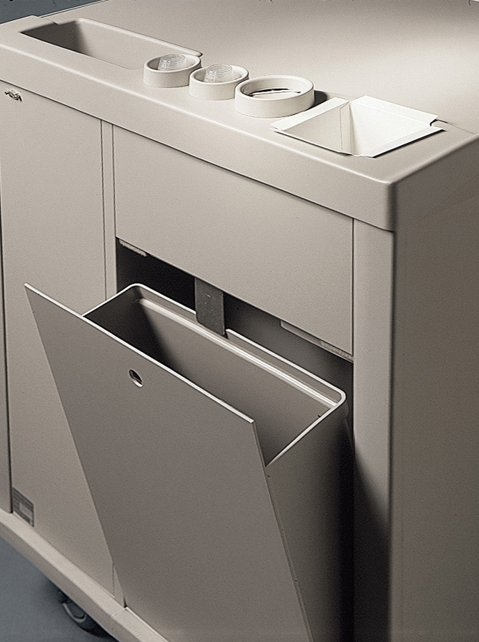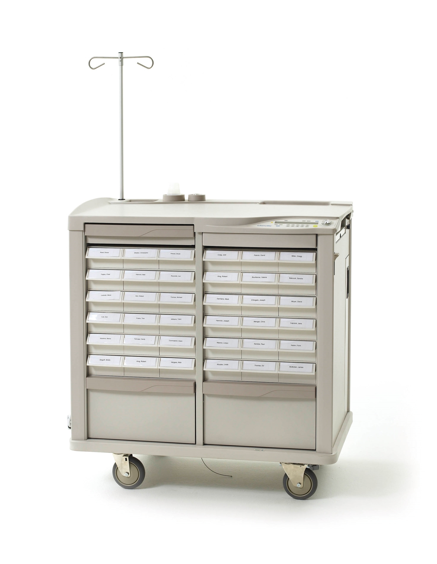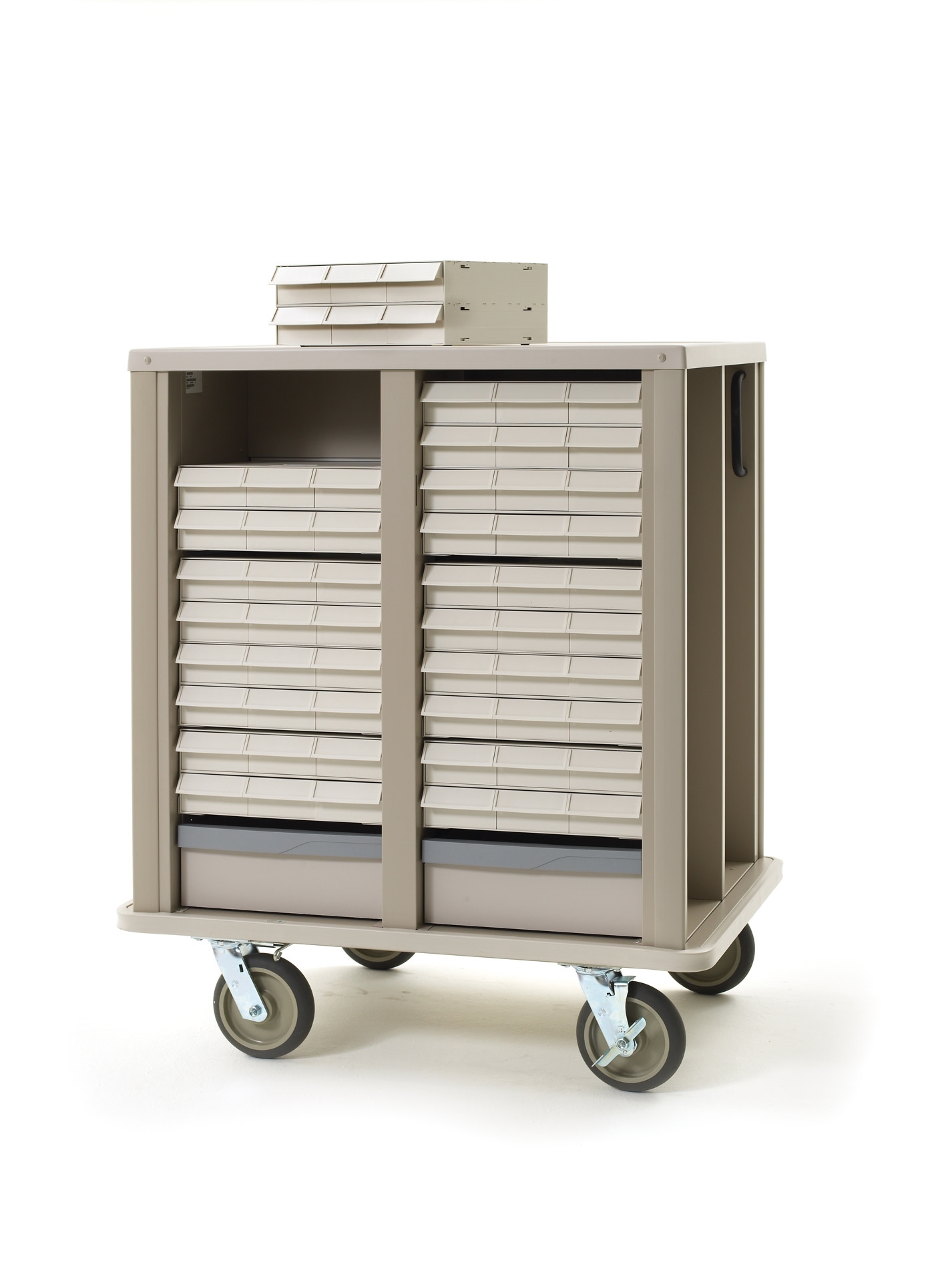 Deze niet-modulaire medicatiewagen is uitstekend te combineren met een Eizo beeldscherm, Mifare paslezer en barcodescanners.