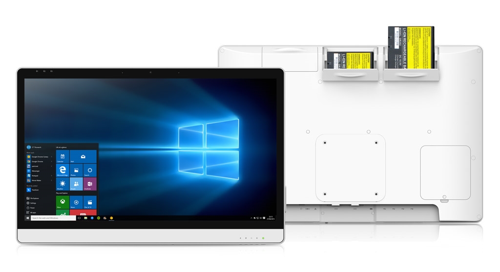 De 581, 582 & 584 All-in-one medische PC’s zijn ideaal voor al uw mobiele werkplekken. Door de integratie van een 19,5-inch, 22-inch of 24-inch scherm met een energiezuinig Intel® Pentium® Gold- of Core™ i-platform met hot-swappable batterijen in een ventilatorloze, slanke, bacteriebestendige behuizing, is deze medische PC uitermate geschikt voor elke medische omgeving.De ingebouwde Wi-Fi- en Bluetooth-verbinding evenals de opties voor het vastleggen van gegevens maken datatoegang ook efficiënt en optimaliseren de workflow van het personeel. Zo is er geen noodzaak om dure externe medische accu’s aan te schaffen. De medische AIO PC voorziet de werkplek van stroom.