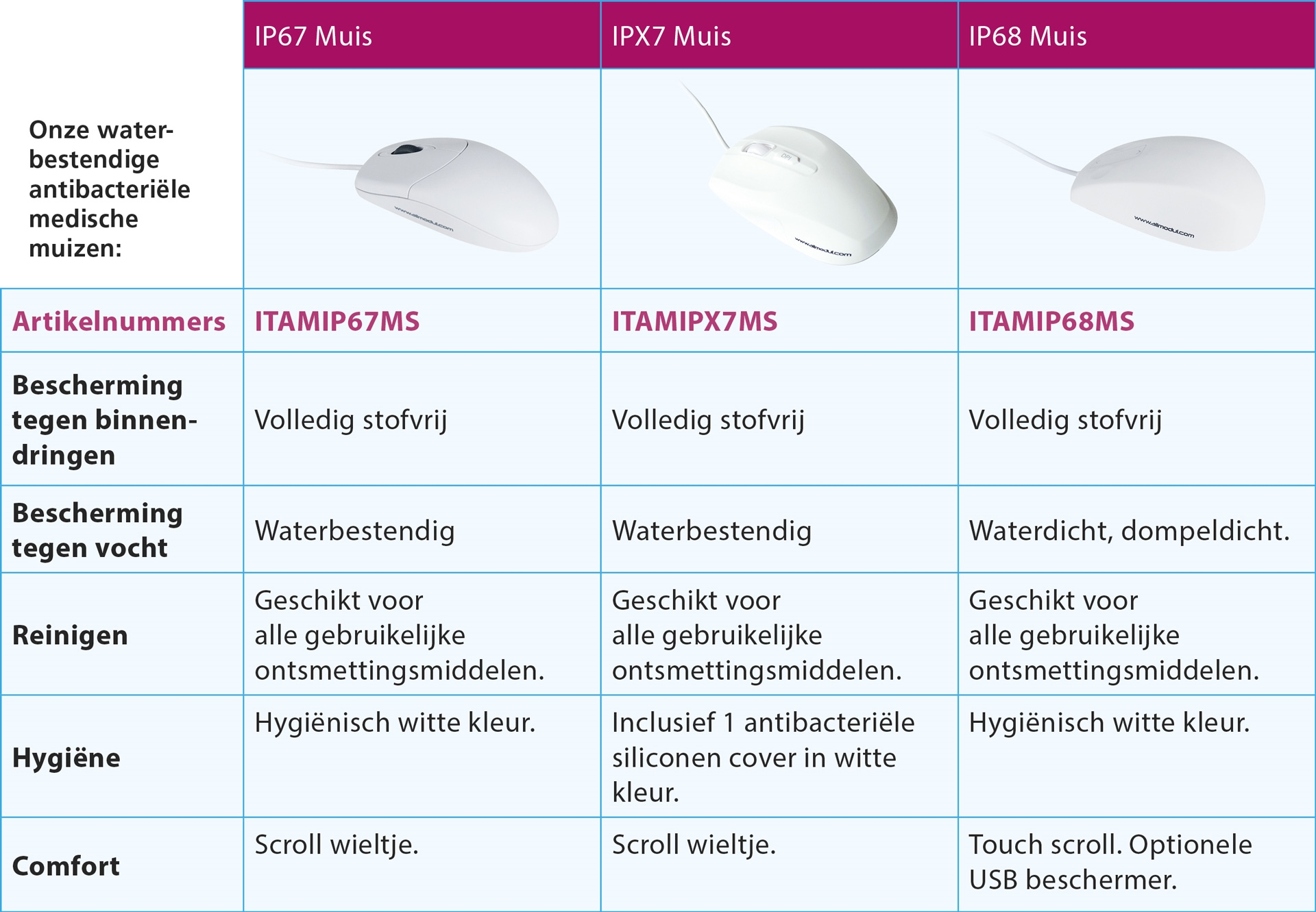 Met de uitgebreide kennis en ervaring van de zorg heeft All Modul betaalbare medische toetsenborden en medische muizen ontwikkeld die aan de kwaliteitseisen van de gebruikers in een medische omgeving voldoen. Al onze toetsenborden en muizen zijn uitstekend te reinigen waardoor een goede hygiëne gewaarborgd is.