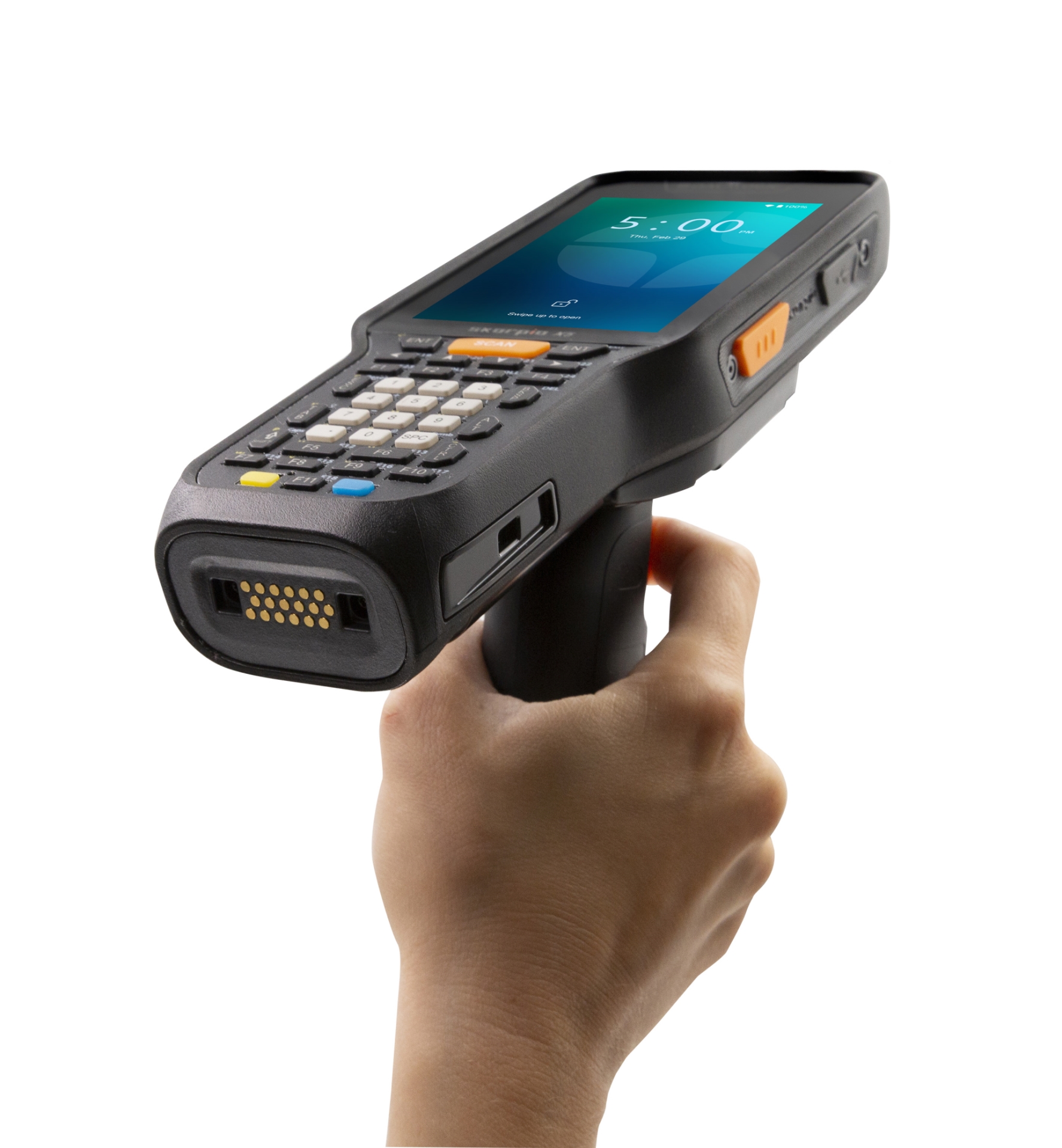 De Skorpio X5 is de beste in zijn klasse van robuuste toetsgebaseerde mobiele handheld computers. De Skorpio X5 kan de meest uitdagende situaties aan binnen het scannen en opslaan van verschillende data. Lichtgewicht, ergonomisch met verschillende configuraties en verscheidene modellen, maakt de Skorpio X5 tot een uitstekende keuze voor uw toepassingsgebied. Zowel in de ziekenhuis magazijnen als apotheken, ziekenhuis logistiek of goederenontvangst.