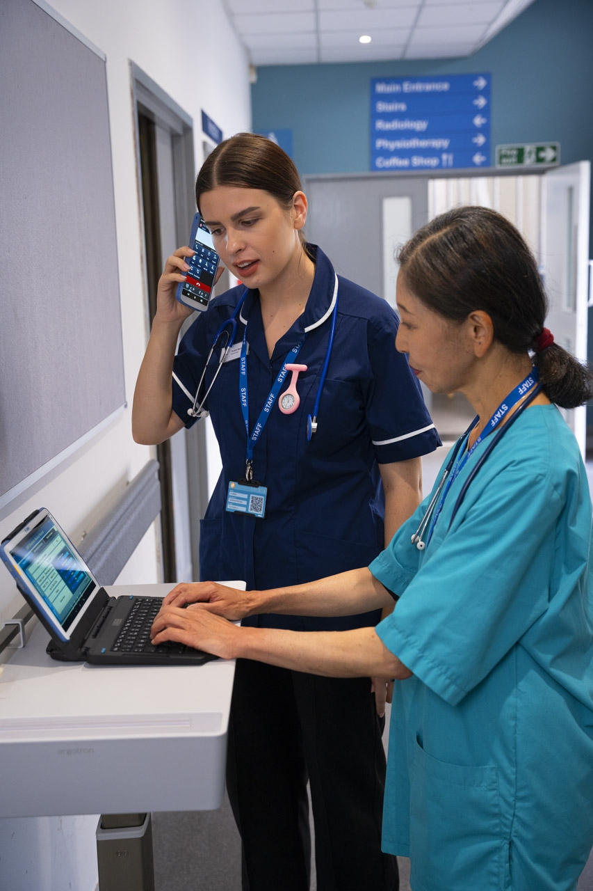 De HC20 is verandert moeiteloos in een portofoon, PBX-handset, mobiel werkstation volledig afgestemd op de dynamiek van de zorgpraktijk.