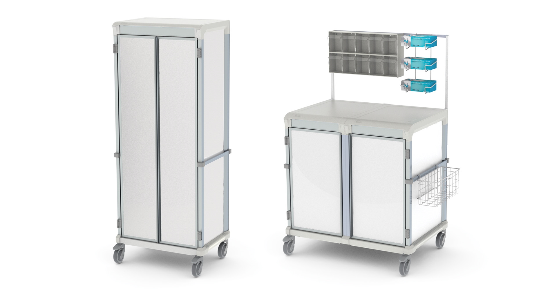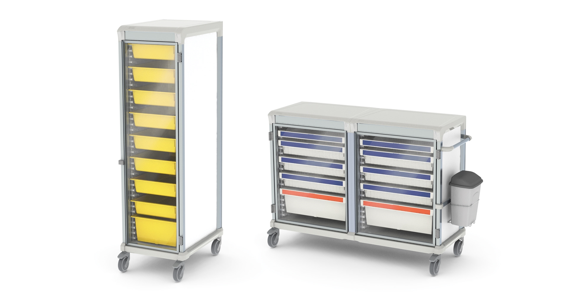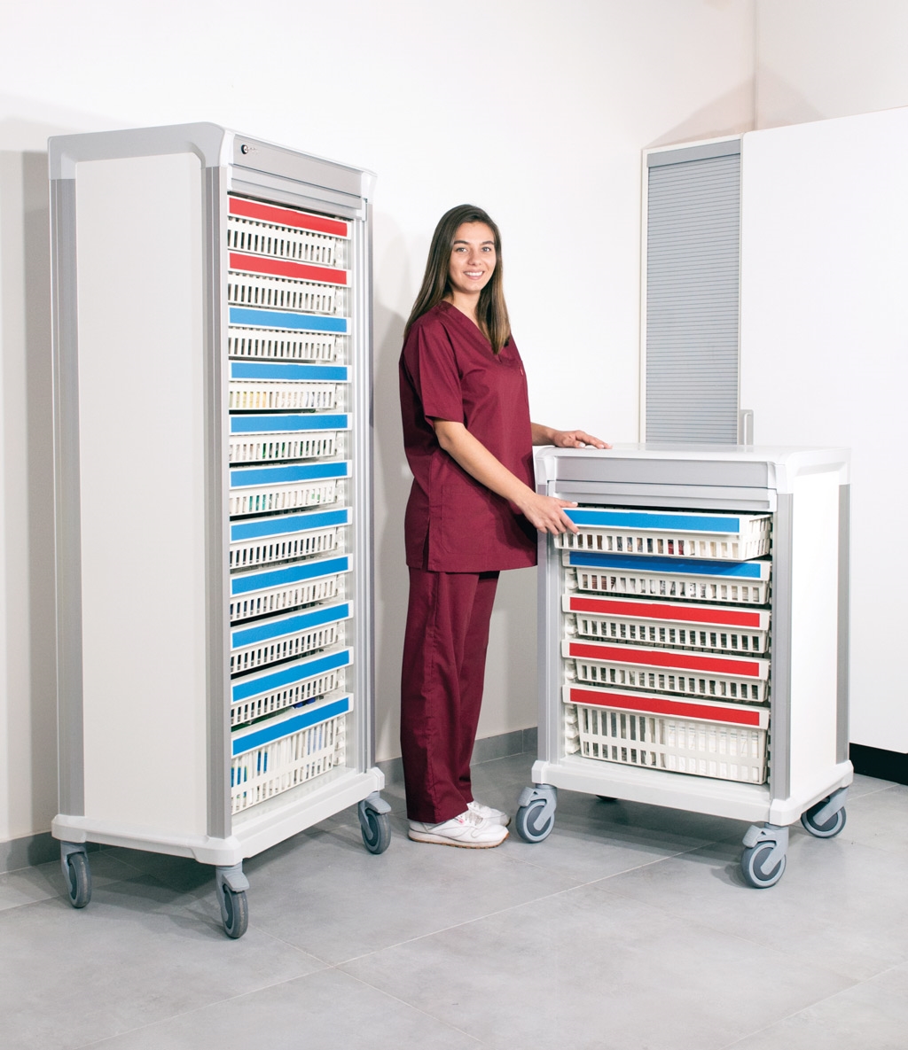 De aluminium karren van All Modul hebben een hoogwaardige uitstraling en zijn breed inzetbaar door de combinatie van verschillende dieptes, hoogtes en slot mogelijkheden. De inzetbaarheid van de wagens varieert daardoor van kleine behandelwagen tot grote mobiele opslag in bijvoorbeeld MRI-ruimtes.