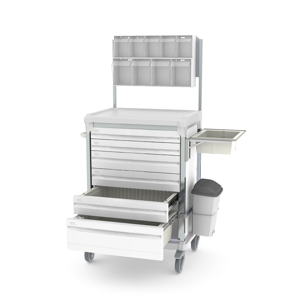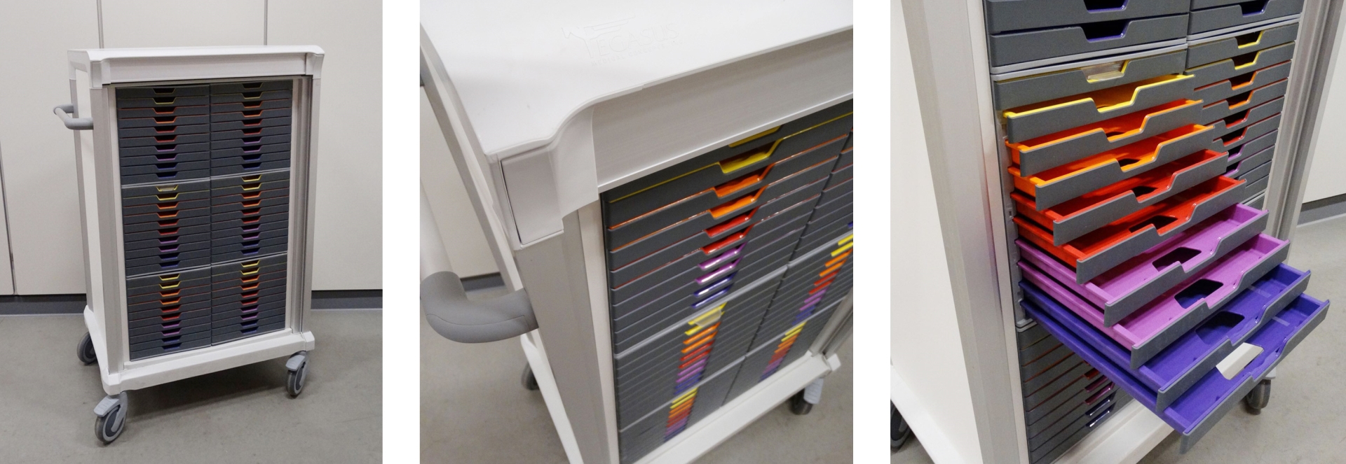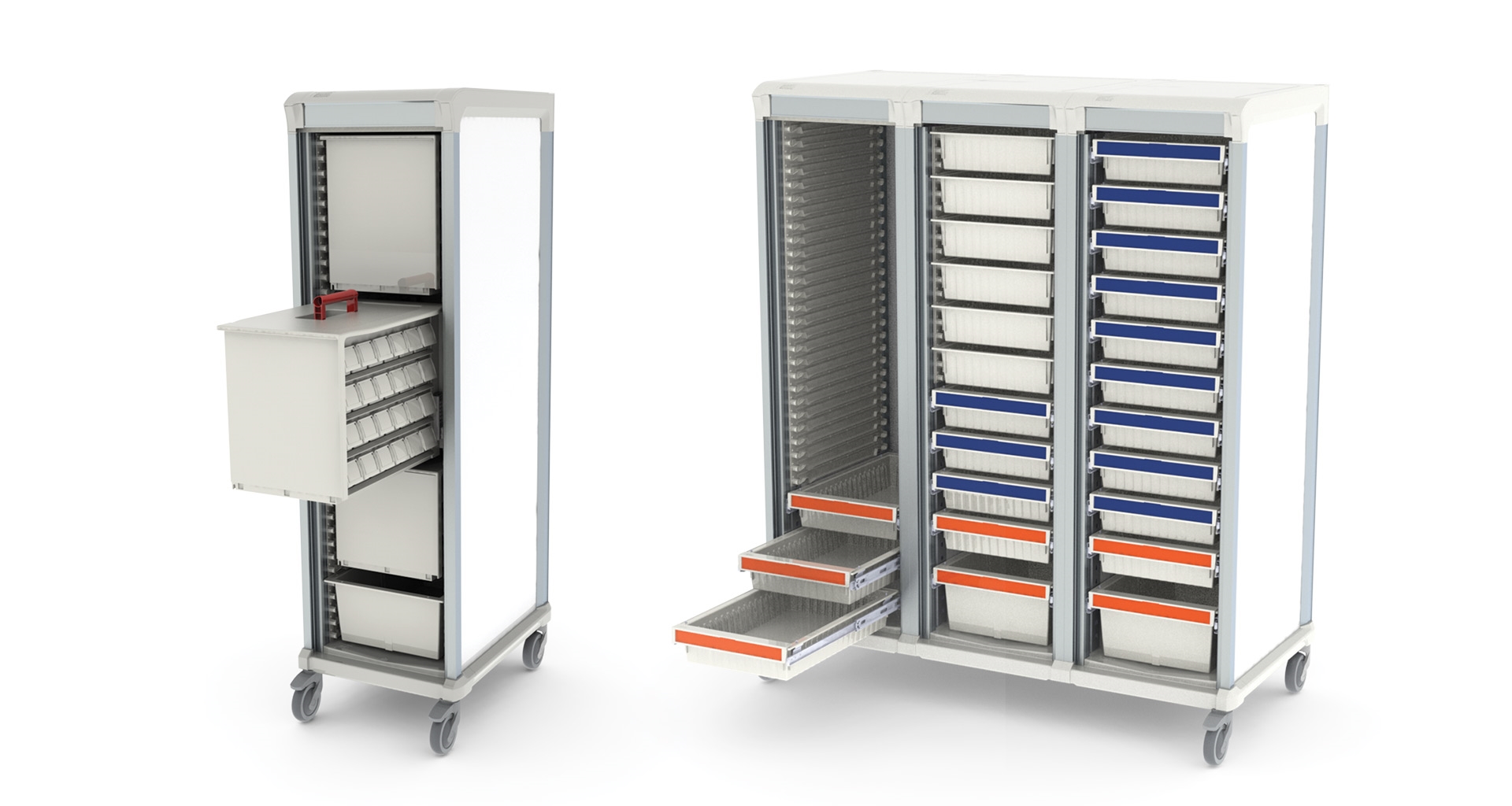 De aluminium karren van All Modul hebben een hoogwaardige uitstraling en zijn breed inzetbaar door de combinatie van verschillende dieptes, hoogtes en slot mogelijkheden. De inzetbaarheid van de wagens varieert daardoor van kleine behandelwagen tot grote mobiele opslag in bijvoorbeeld MRI-ruimtes.