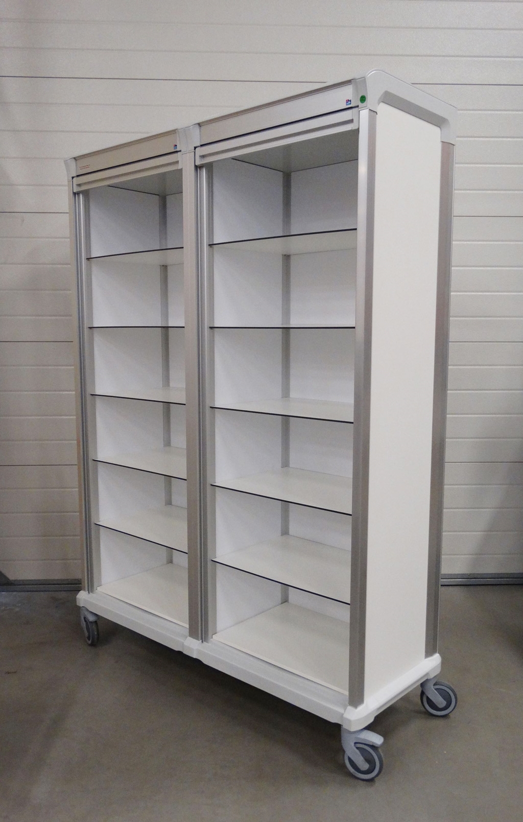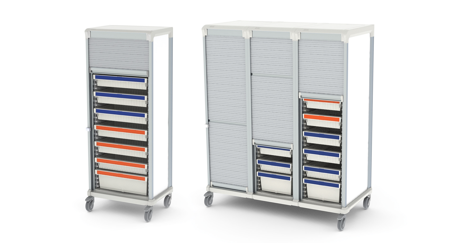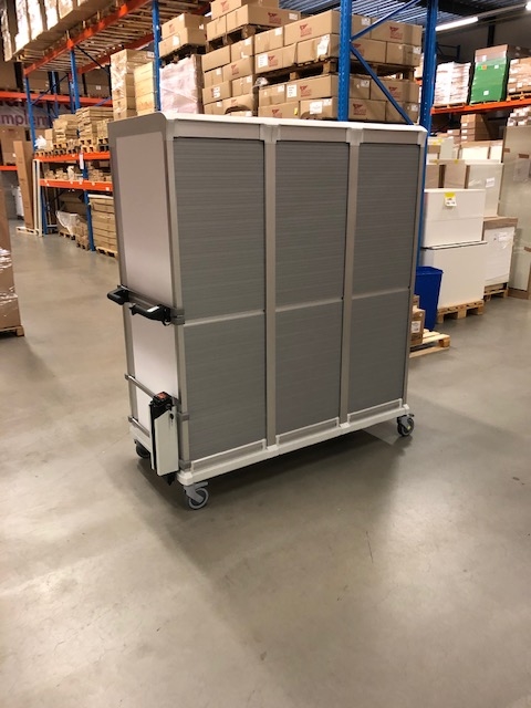 De verschillende compartimenten van de Alu wagens zijn te koppelen, waardoor u een unieke opstelling creëert met wagens. De wagens zijn perfect bruikbaar in kleinere ruimtes, mits voorzien van een rolluik. Onze aluminium roluik wagens worden vaak toegepast als bijvoorbeeld een rolluik transportkar of als medicijnwagen met rolluik. Naast rolluiken kunt u de aluminium wagens voorzien van andere soort deuren, zoals glas. Ook dichte deuren of geen deuren is mogelijk. Met onze aluminium wagens benut u ruimtes optimaal, want u heeft de keuze tussen brede of smalle compartimenten, waardoor de breedte- en dieptematen veranderen.