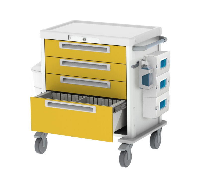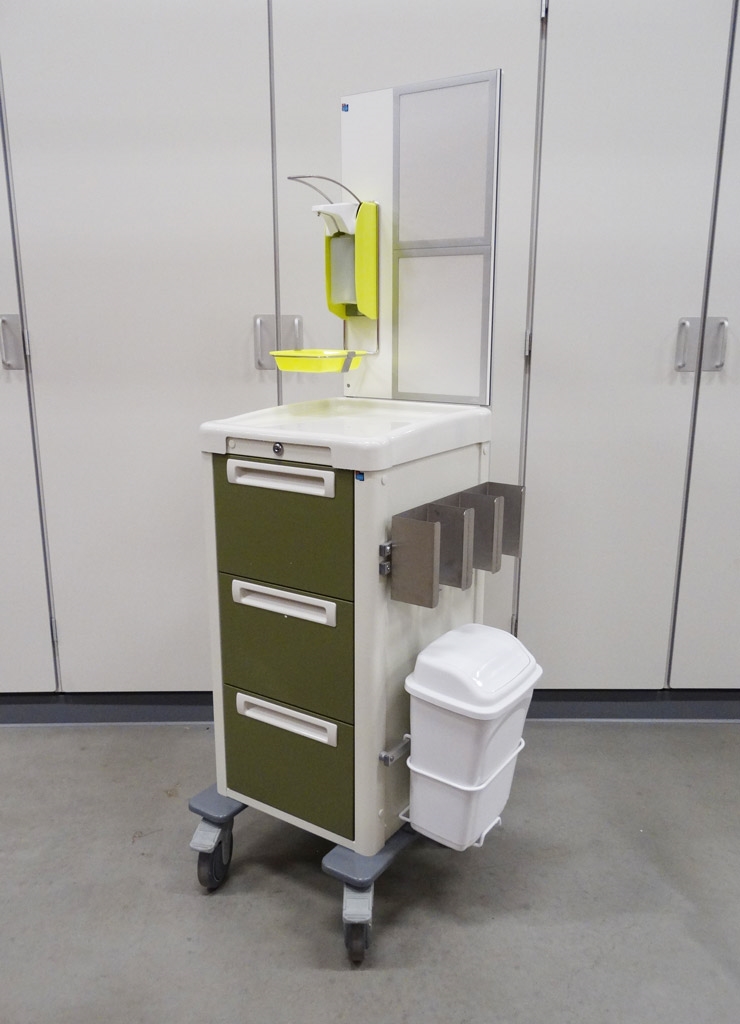 Onze modulaire stalen ladewagens zijn de basis voor het samenstellen van de door uw gewenste isolatiewagen. De wagenconfiguratie en modulaire inhoud kunt u naar eigen wens bepalen. Vaak worden isolatiekarren zo ingericht dat handschoenen, maskers, schorten of jassen erin opgeborgen kunnen worden. Daarnaast kan de isolatiewagen worden voorzien van een desinfectiepomp inclusief houder, handschoenendoos houder, prullenbak en een slot.