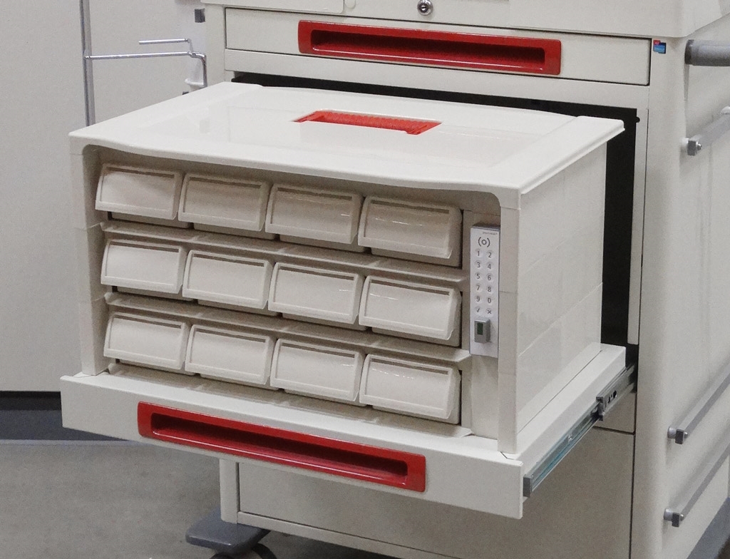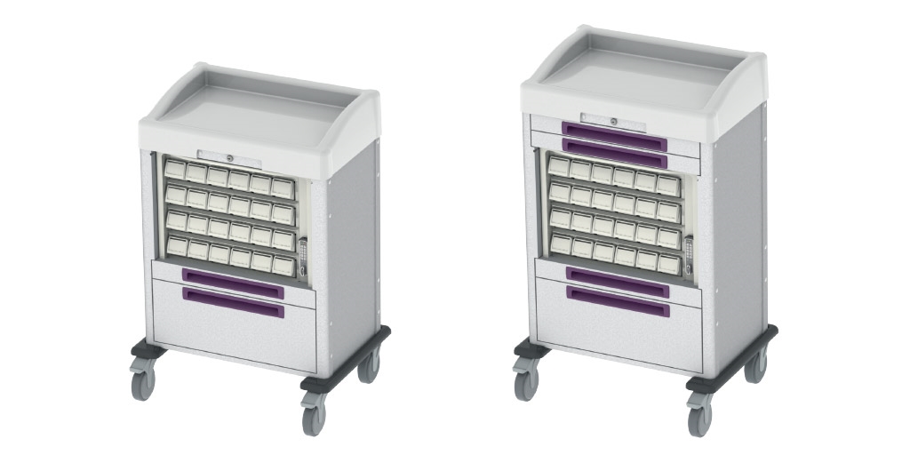 De innovatieve draagbare modulaire medicijncassette is in de modulaire maten vormgegeven, 600 x 400 mm. Hierdoor kunnen de cassettes moeiteloos in elke wagen, compatibel met het ISO 3394 systeem, worden geschoven. Verkrijgbaar in 1 t/m 4 lagen in de kleur wit met transparante of witte medicijnlades.