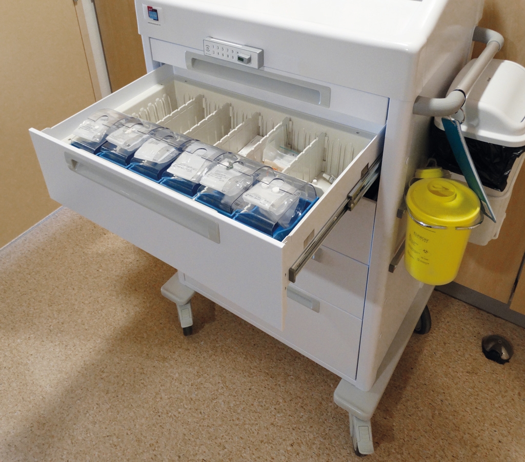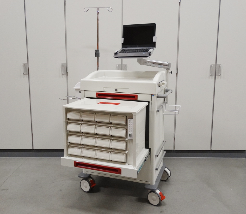 Er zijn diverse vergrendelingsmogelijkheden voor de medicatiekar mogelijk. Zowel openen en sluiten met sleutelsloten is mogelijk als een elektronisch slot met pincode of RFID kaartlezer (alle kaarten mogelijk).