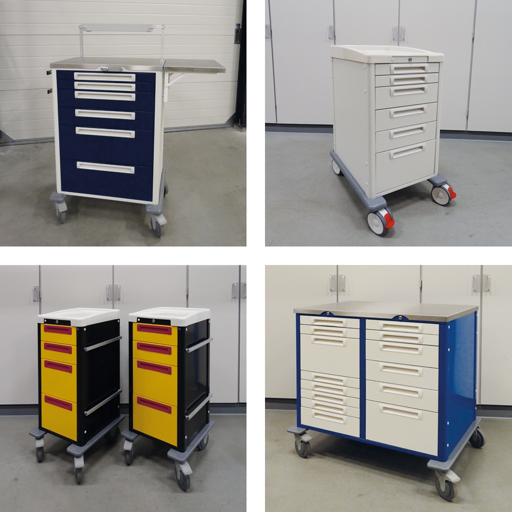 Onze ladewagens zijn zodanig ingericht, dat u de wagens indien gewenst snel kan ombouwen naar een andere functionaliteit. De half/geheel modulaire wagens hebben een fraai design, een aangename prijsstelling en een doordacht, op de zorg gericht, ontwerp. Handgrepen zijn van een kleur te voorzien voor een vrolijk design of voor kleurcodering.