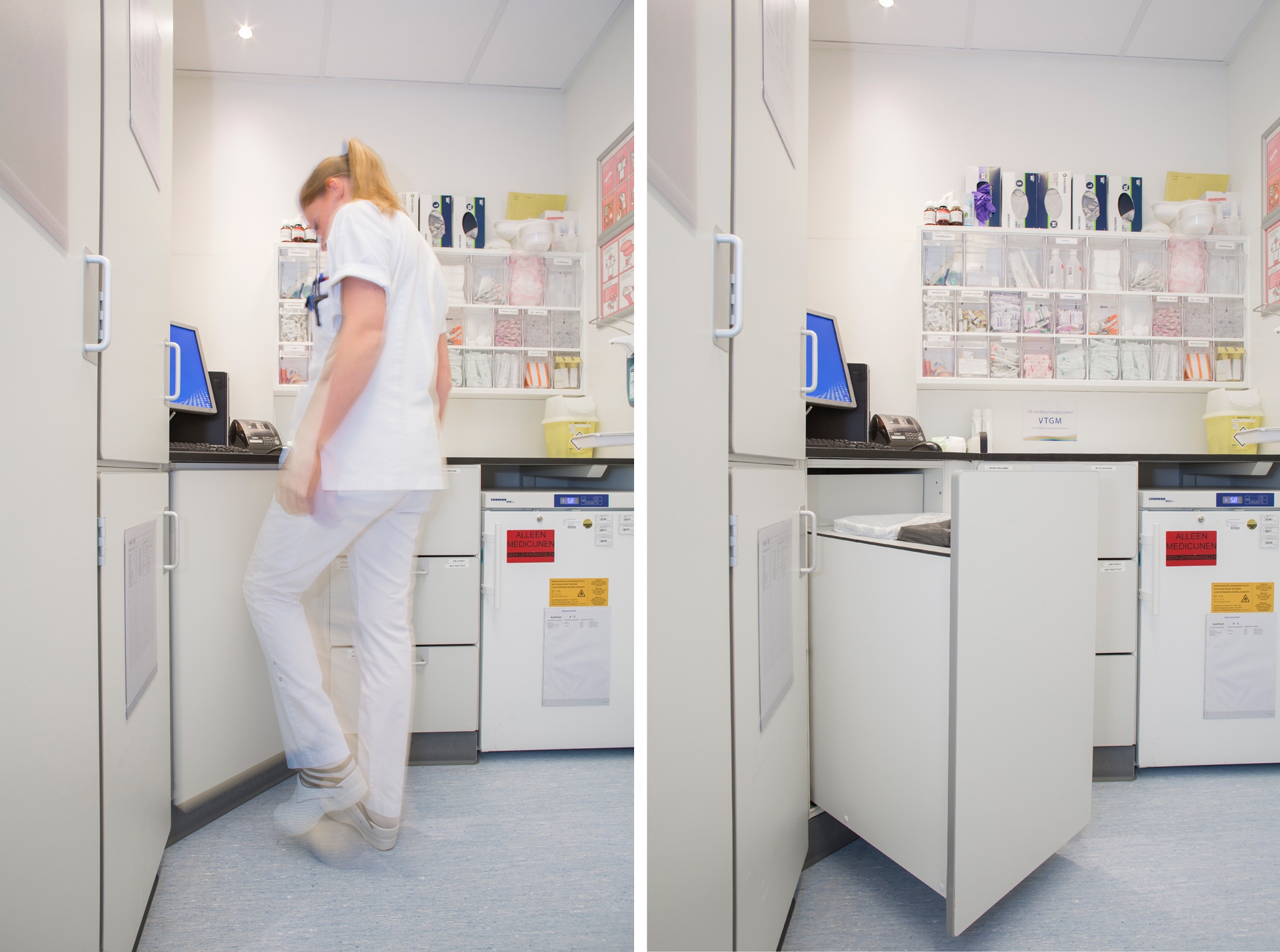 Mede door de veelzijdigheid aan toepassingen, het gebruikte plaatmateriaal met hoge persing, de verlijmde constructie en de duurzaamheid is de W-line kast bijzonder populair bij ziekenhuizen en zorginstellingen. De modulaire kasten passen in elk type zorg verlenende instelling.