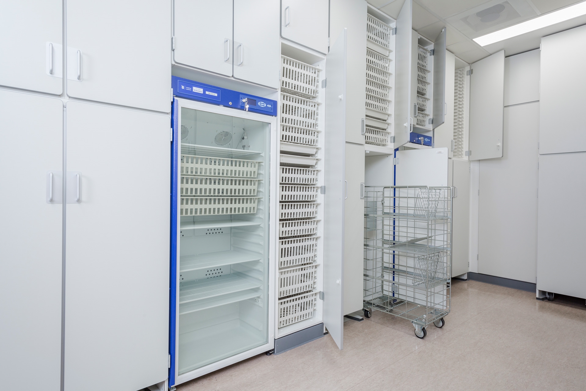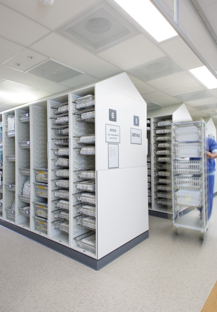 Hieronder een foto met een doorvertaling van onze medische W-line kasten in het magazijn steriel instrumentarium bij het Erasmus MC in Rotterdam.