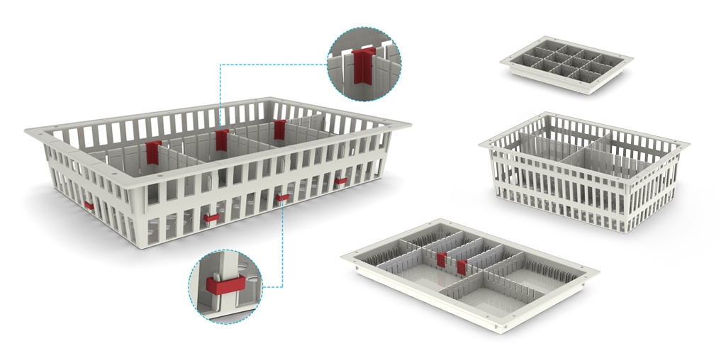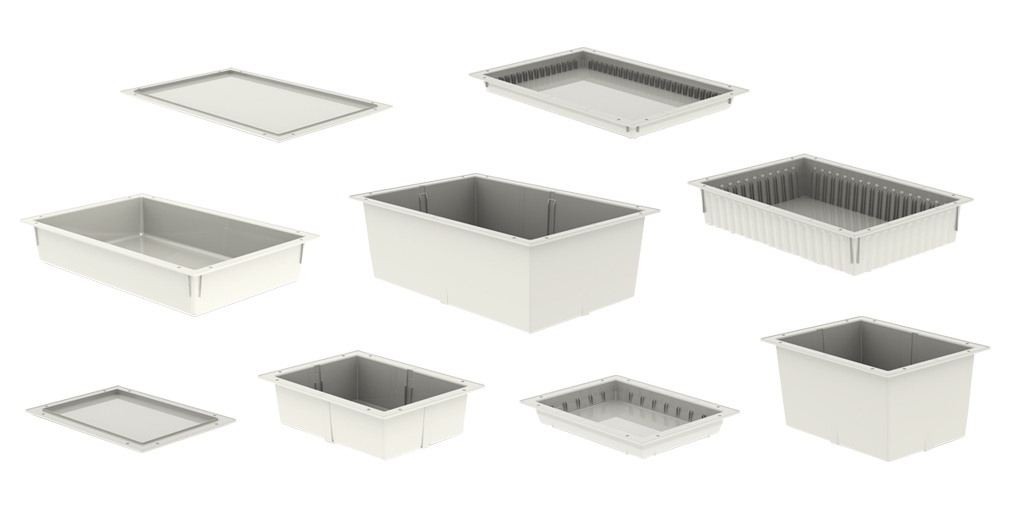 De modules en accessoires van All Modul vormen de bouwstenen voor de rest van de modulaire producten. De modulaire bakken/manden zijn afhankelijk van de toepassing te verkrijgen in dichte en gedeeltelijk open versies. Ook het soort materiaal en de maatvoering is afhankelijk van het toepassingsgebied van de modules.