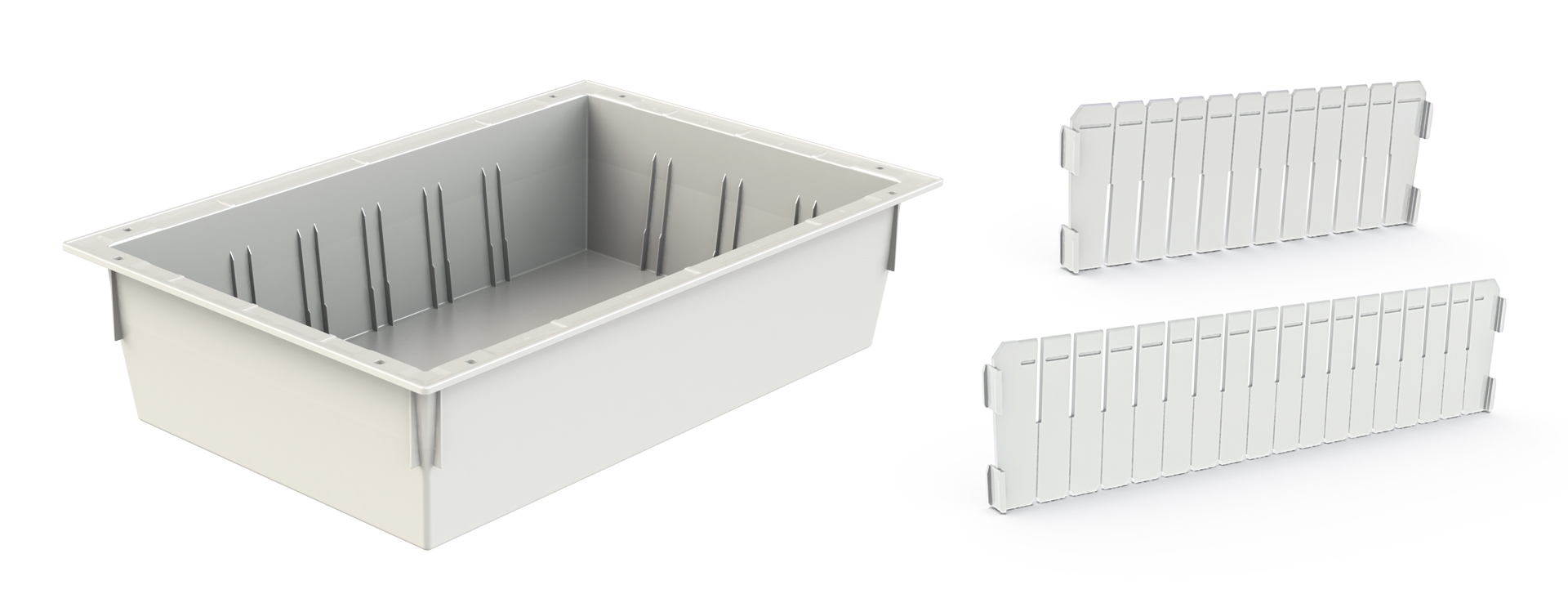 Door middel van ons grote arsenaal aan accessoires, waaronder T-stukjes, U-klemmen en stopjes, zijn de indelingsmogelijkheden eindeloos. Wij geven u graag advies bij het inrichten van modulaire producten met behulp van onze inhoud en accessoires.