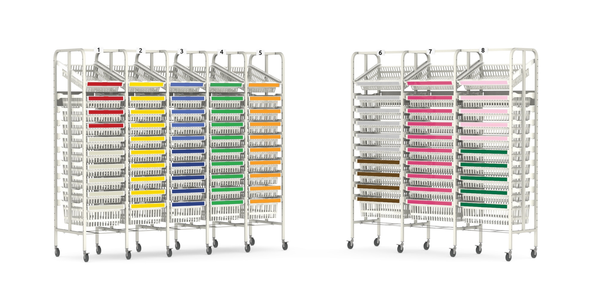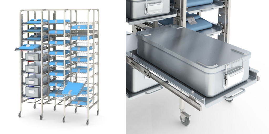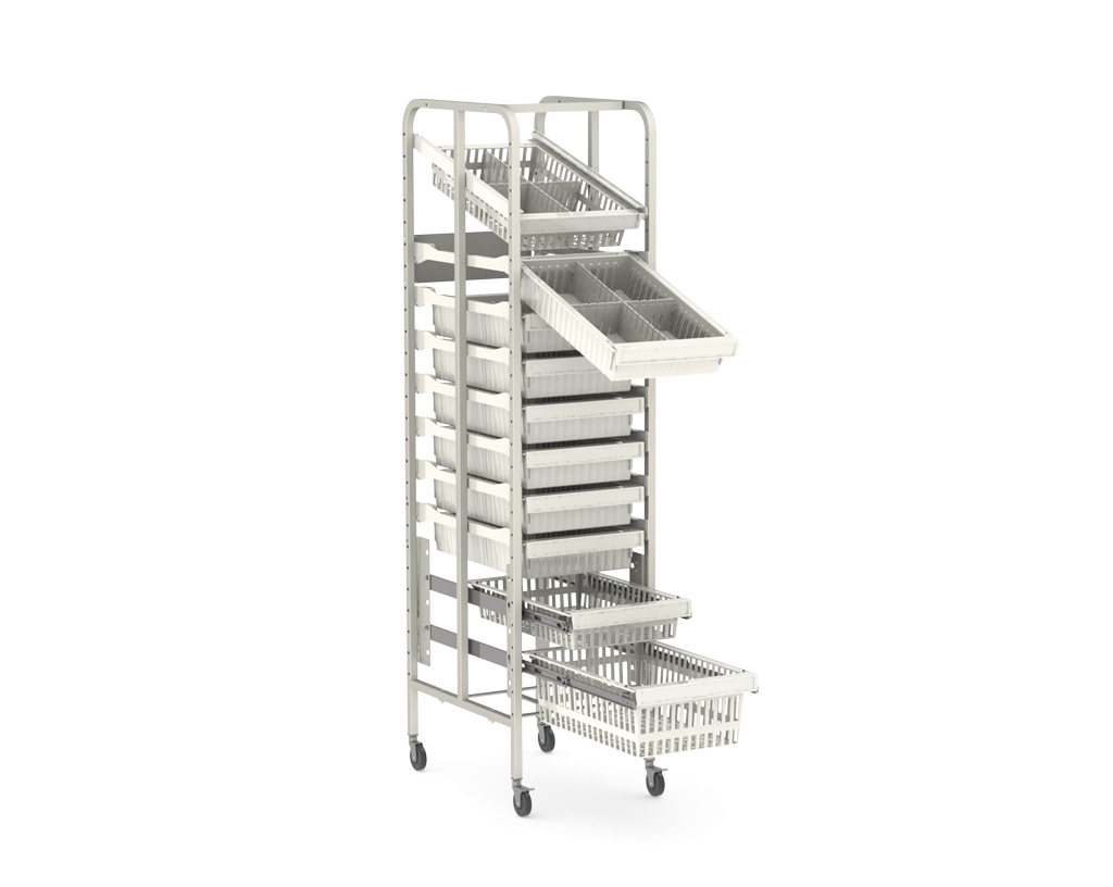 Frame racks zijn duidelijk inzichtelijke stellingen. Deze stellingen worden veel ingezet voor micro opslag in productie- en assemblageprocessen op bijvoorbeeld de IC en OK in ziekenhuizen en in dialyse centra. Met deze stellingen kunt u ook het gehele logistieke proces binnen uw zorgverlenende instelling inrichten.